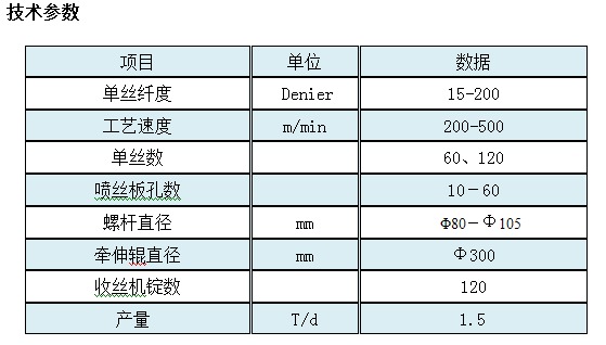 設(shè)備用于滌綸、丙綸、錦綸粗旦纖維工業(yè)絲的生產(chǎn),該絲主要用于漁網(wǎng)線、繩索、高密度濾布、頭巾、緍紗、面罩、墊肩、遮陽布等。