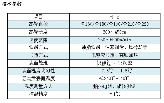 1. 滌綸、錦綸絲熱輥利用電感應(yīng)加熱,熱管均溫或分段控溫技術(shù),使熱輥工作區(qū)表面溫度均勻,能滿足不同的工業(yè)絲、民用絲FDY紡絲工藝的要求。