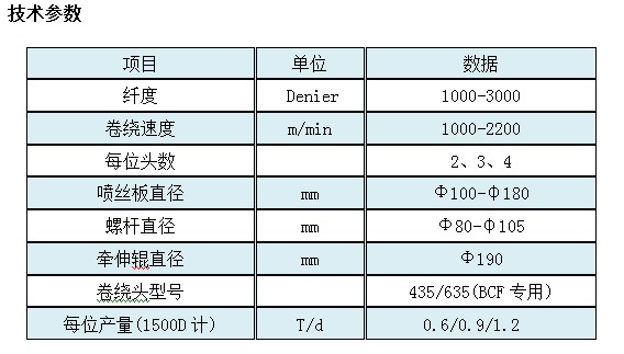 丙綸BCF紡絲機(jī)技術(shù)參數(shù)如下: